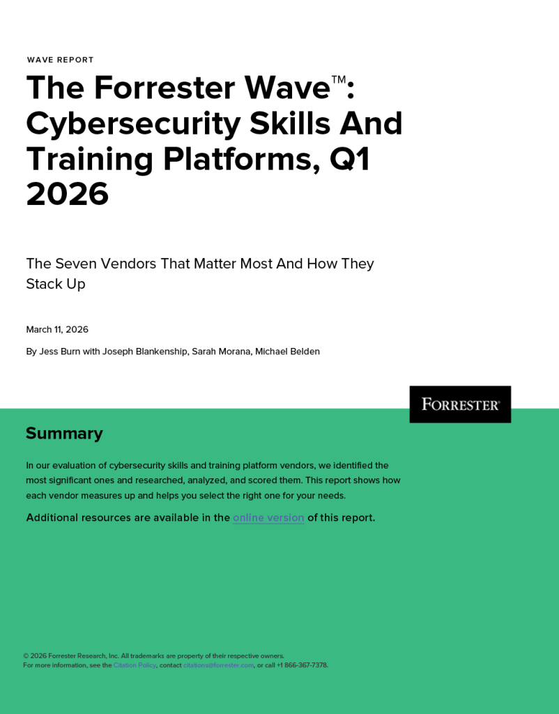 The Forrester Wave™: Cybersecurity Skills And Training Platforms, Q1 2026 evaluates platforms and highlights the capabilities necessary for security teams to achieve agentic AI readiness.